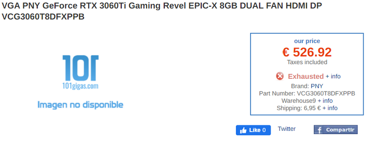 Outro varejista espanhol, a XtremeMedia, está esperando a Gigabyte GeForce RTX 3060 Ti Eagle. Segundo o vendedor, um preço razoável por ele seria de 483,90 euros (incluindo IVA de 21%).