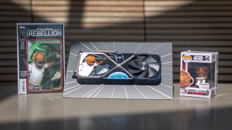 A placa de vídeo é equipada com uma placa de reforço traseira, que é pintada à mão com a imagem do Almirante Gial Ackbar, personagem do MCU que é um dos melhores comandantes da Aliança para Restaurar a República e, posteriormente, da Nova República. A Nvidia fixou o preço desta GeForce RTX 4080 em US$ 1.499.