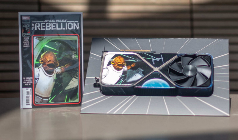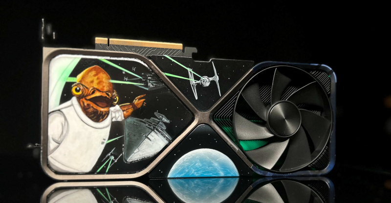 Por ocasião do Star Wars Day, que tradicionalmente acontece em 4 de maio, a Nvidia preparou uma placa de vídeo GeForce RTX 4080 exclusiva, pintada à mão com base na saga cult de ficção científica de George Lucas “Star Wars” da editora de quadrinhos Dark Cavalo. Este cartão não pode ser adquirido, mas pode ser ganho em uma competição.