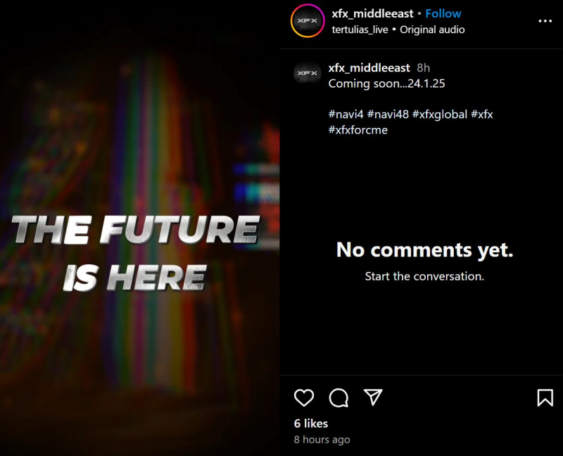 Já a empresa XFX anunciou em seu Instagram✴ que novos detalhes sobre a nova geração de placas de vídeo Radeon serão esperados no dia 24 de janeiro. Não se sabe se a AMD vai lançar placas neste dia ou se estamos falando apenas de parceiros mostrando suas soluções baseadas nas Radeon RX 9070 XT e RX 9070. Vale ressaltar que a XFX, por meio de uma hashtag, também confirmou que um dos novos produtos utiliza processador gráfico Navi 48. A AMD ainda não confirmou esta informação.