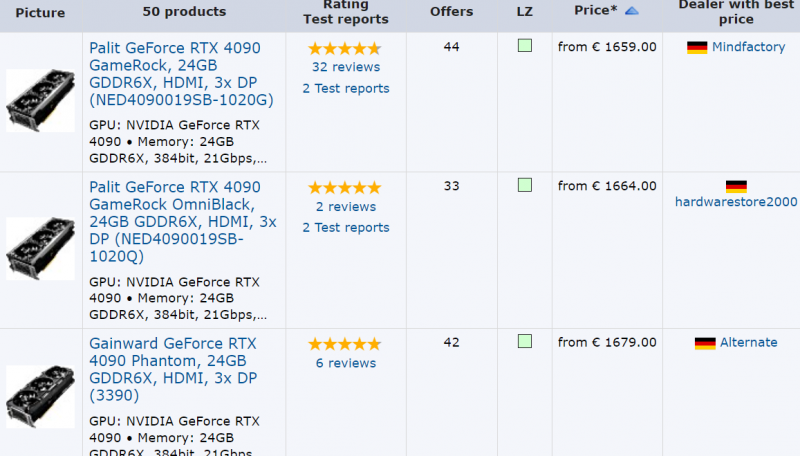 De referir ainda que o preço aumentou apenas para a versão de referência da GeForce RTX 4090. Alguns parceiros NVIDIA continuam a reduzir o custo das suas versões deste acelerador gráfico. Por exemplo, a Gainward oferece as suas versões da RTX 4090 a partir de 1659€, valor ainda inferior ao preço recomendado. Em geral, é improvável que um aumento no custo da placa de vídeo carro-chefe RTX 4090 em 30 euros assuste os compradores no segmento para o qual ela foi projetada.