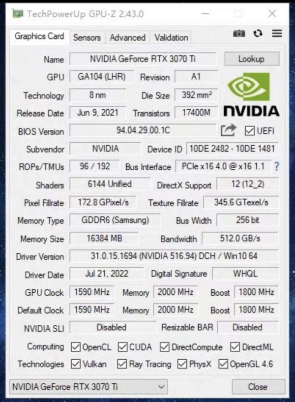 Infelizmente, o insider não compartilhou dados de desempenho da GeForce RTX 3070 Ti 16GB. No entanto, o fato de o acelerador suportar as versões atuais do driver gráfico NVIDIA dá esperança de que essas informações sejam publicadas no futuro.