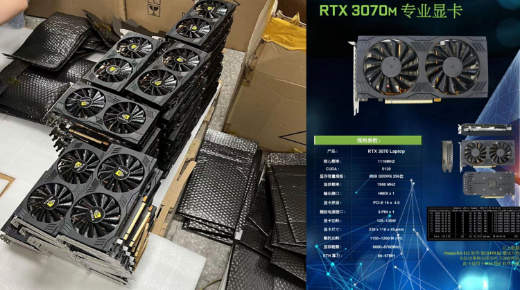 OEMs empreendedores chineses têm aceleradores de GPU GeForce RTX 3060 e RTX 3070 produzidos em massa com base nas versões móveis dessas placas. Acontece que essa é a maneira mais fácil de contornar a proteção Lite Hash Rate que acompanha as versões para desktop dessas GPUs. Em outras palavras, tais soluções são focadas especificamente em mineradores, e não em jogadores comuns.