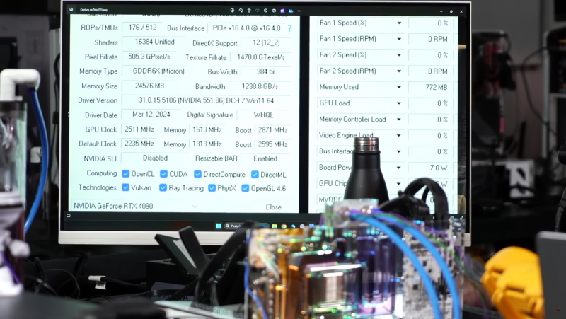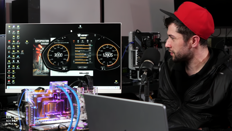Ao usar nitrogênio líquido para resfriamento, o desempenho da placa melhora ainda mais significativamente – é 40% mais rápido que o RTX 4090 normal no mesmo teste e na mesma resolução de 8K.
