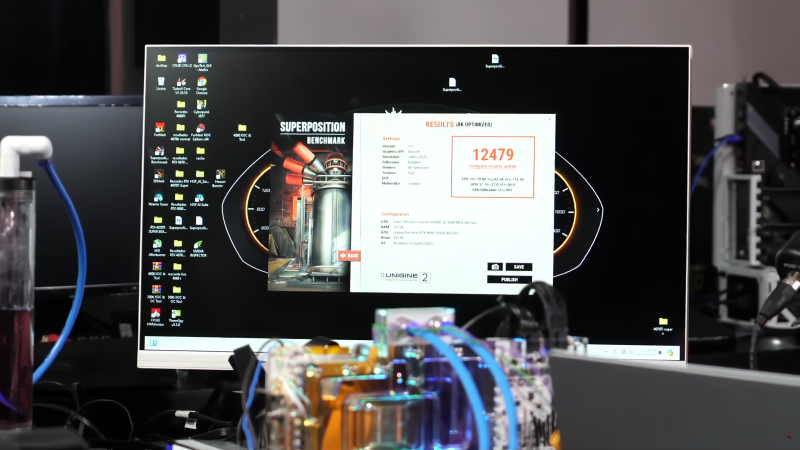 Em estoque, o RTX 4090 modificado tem desempenho semelhante ao RTX 4090 padrão regular. No entanto, devido ao uso de chips de memória mais rápidos (e sem overclocking adicional de GPU), a versão modificada oferece um aumento de 13 por cento no desempenho em comparação com o RTX 4090 normal. no benchmark Unigine Superposition com resolução de 8K. E com overclock adicional da GPU para 3 GHz, a vantagem da GeForce RTX 4090 Super no mesmo teste já é de 16%.