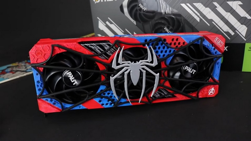 A nova GeForce RTX 4070 GamingPro lançada na semana passada foi tomada como base para o projeto Italian Extreme Modders, cujo cooler foi decorado com um elemento decorativo inspirado no universo do Homem-Aranha. Palit não pode compartilhar o esquema pronto para lançar um elemento decorativo por causa dos direitos de licença para esse personagem que não pertencem a ele. No entanto, com materiais, tempo e talento suficientes, os proprietários de impressoras 3D podem criar algo semelhante por conta própria.