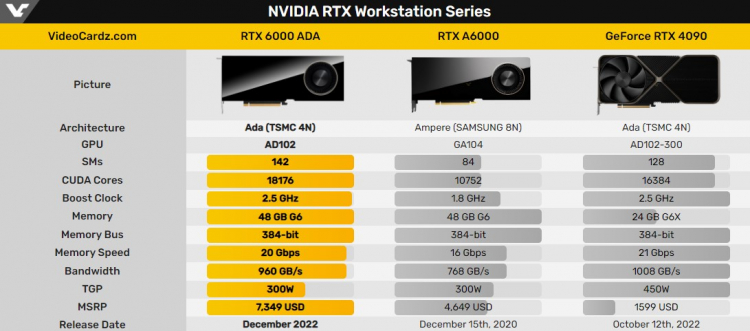 A placa de vídeo profissional NVIDIA RTX 6000 foi listada nos bancos de dados de vários varejistas estrangeiros. Um acelerador gráfico especializado para estações de trabalho foi lançado no final de setembro deste ano. Baseia-se na mesma arquitetura Ada Lovelace das placas gráficas para jogos da série GeForce RTX 40.