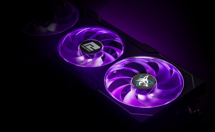 O PowerColor Radeon RX 7900 XTX Hellhound e o RX 7900 XT Hellhound são retroiluminados. No entanto, existem apenas duas cores para escolher: o azul padrão ou o novo roxo ametista.