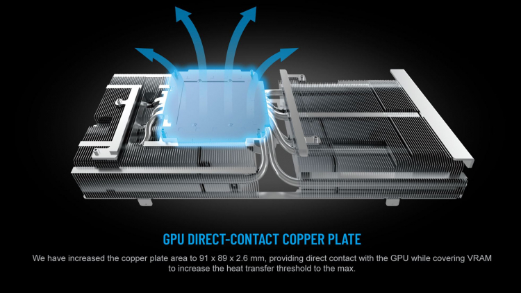 As placas gráficas das séries PowerColor Radeon RX 7900 XTX e RX 7900 XT Hellhound usam uma placa de contato do dissipador de calor maior do que seus antecessores para transferir o calor da GPU e dos chips de memória. As dimensões da placa são 91 × 89 × 2,6 mm.
