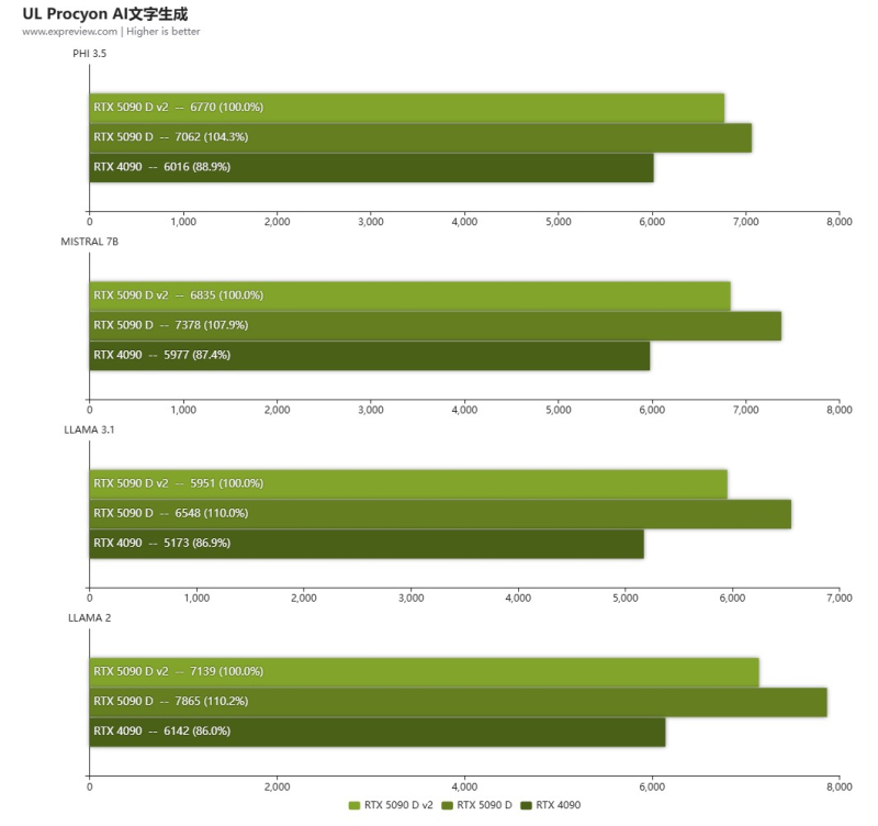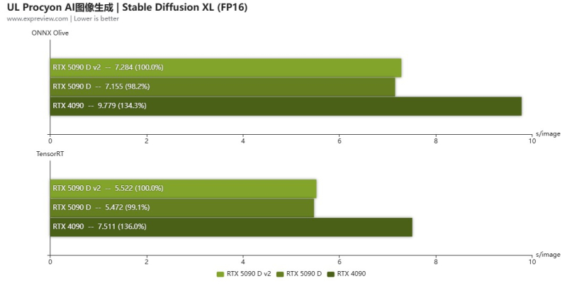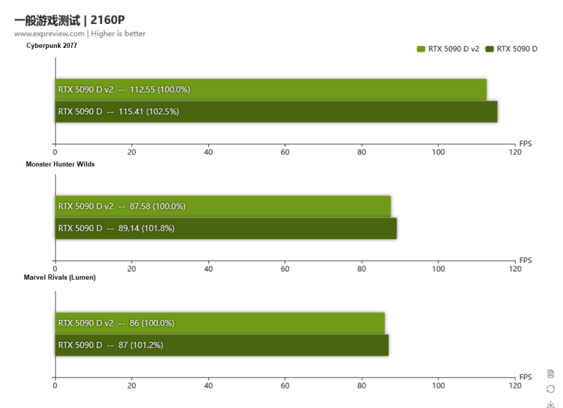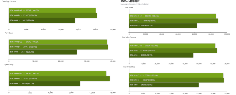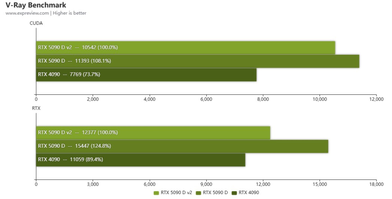 A publicação chinesa Expreview comparou o desempenho das placas de vídeo GeForce RTX 5090D V2 e GeForce RTX 5090D. Ambas foram lançadas especificamente para o mercado chinês e, inicialmente, apresentam desempenho inferior ao modelo original GeForce RTX 5090, lançado para o mercado global.