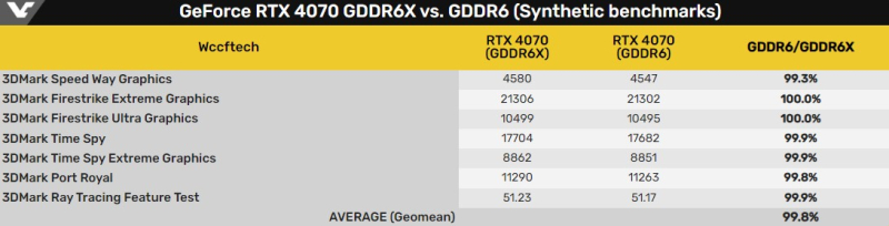 No mês passado, a Nvidia apresentou a GeForce RTX 4070 com memória GDDR6. Suas características são quase idênticas às da RTX 4070 com memória GDDR6X, com exceção da memória mais lenta. A Nvidia afirmou que o desempenho da nova placa será quase idêntico ao do modelo original. Os primeiros resultados de testes surgiram para apoiar esta afirmação.