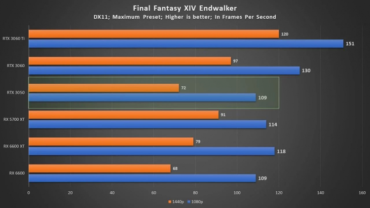 O desempenho da novidade foi comparado com modelos como a Radeon RX 6600 XT, Radeon RX 6600, Radeon RX 5700 XT, GeForce RTX 3060 e GeForce RTX 3060 Ti. Infelizmente, nenhuma placa da série GeForce GTX 16 chegou à comparação. Lembre-se que, de acordo com vazamentos anteriores, o nível de desempenho da GeForce RTX 3050 é semelhante ao da GeForce GTX 1660 Ti. Apenas a novidade se distingue pelo suporte às tecnologias de dimensionamento NVIDIA DLSS e rastreamento de raios RTX.