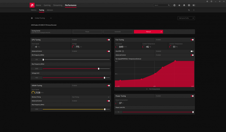Segundo a TechPowerUp, que realizou testes na placa de vídeo, a temperatura do chip gráfico Radeon RX 6900 XT em modo inativo era de 45 graus Celsius. Sob carga, o valor mais alto foi de 78 graus. Ao mesmo tempo, no ponto mais quente do quadro, os jornalistas observaram um valor de temperatura de 95 graus. Na ausência de carga, o sistema de refrigeração da placa de vídeo não liga as ventoinhas; sob carga, seu ruído é de 30 dB. Em outras palavras, o cartão é muito silencioso.