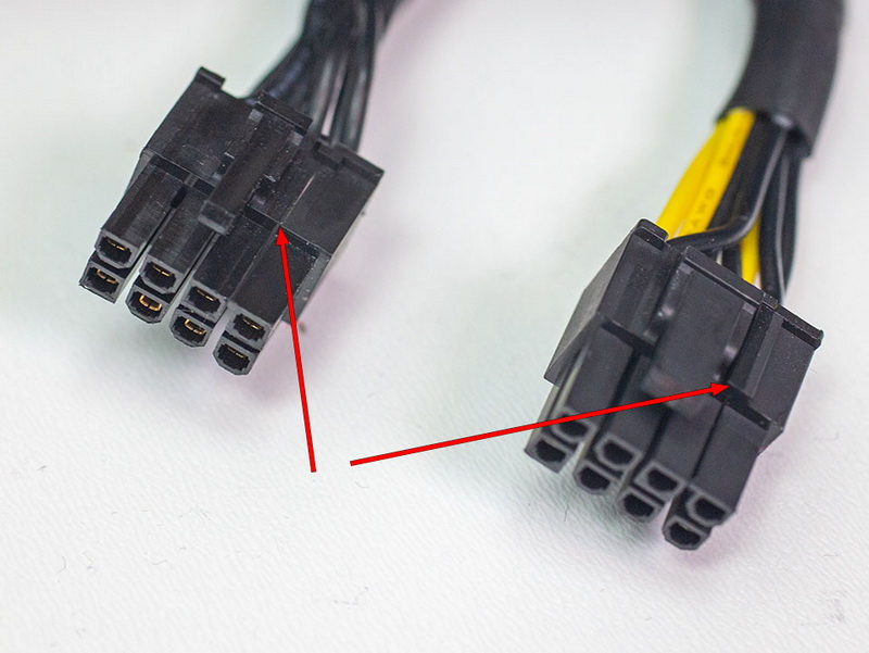 A incompatibilidade especificada foi encontrada apenas em alguns cabos de energia. Conforme observado, alguns conectores de 6 + 2 pinos não podem ser inseridos firmemente no conector de 8 pinos localizado na placa de vídeo, devido ao design da placa. A placa traseira de reforço da placa de vídeo no lugar do conector de alimentação se projeta fortemente para a frente, evitando que o conector do cabo fique bem instalado. O problema ocorre apenas com alguns cabos 6+2 e não ocorre com cabos monolíticos de 8 pinos, pois estes últimos não possuem entalhes adicionais na parte do conector onde estão os dois pinos adicionais.