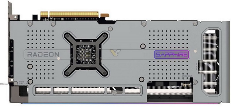 A versão Sapphire Radeon RX 7900 GRE Nitro+ está equipada com um poderoso sistema de refrigeração com três ventoinhas. Aparentemente, o novo produto pega emprestado o design do cooler do modelo Radeon RX 7900 XT NITRO + Lite, que não possui câmara de vapor e faixa de iluminação ARGB em um dos lados.