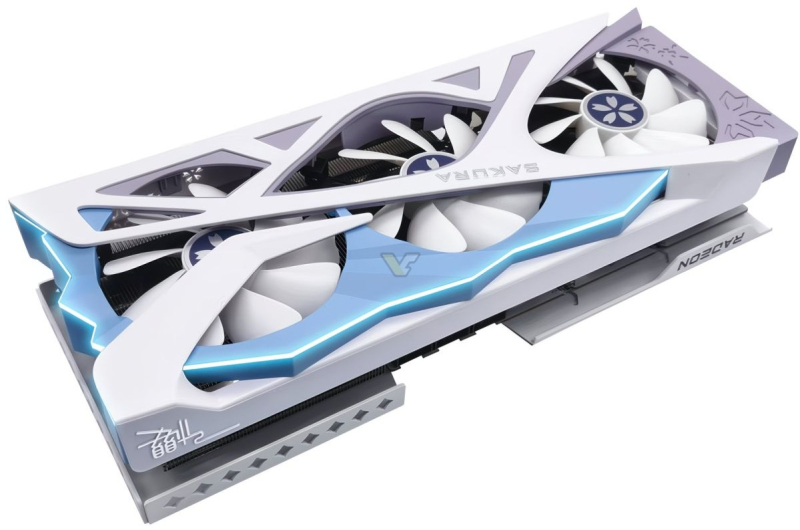 O modelo Radeon RX 9070 XT Sakura oferece exatamente as mesmas características. Acredita-se que ele use o mesmo PCB do Sakura Atlantis. Ambas as placas possuem três conectores PCIe de 8 pinos para alimentação adicional.