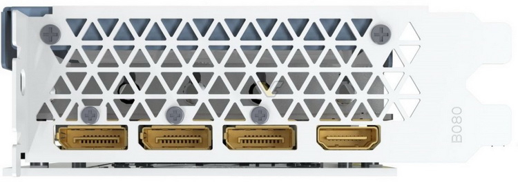 A Zotac GeForce RTX 4070 Ti X-Gaming White tem 2,5 slots de expansão de espessura. Ele também usa um sistema de refrigeração com três ventiladores. A frequência da GPU desta versão é a mesma da AXGaming, ou seja, 2640 MHz, que é um pouco maior que o valor de referência. A placa da Zotac também reivindica 285 W de consumo de energia, mas aqui é possível aumentar esse valor para 314 W.