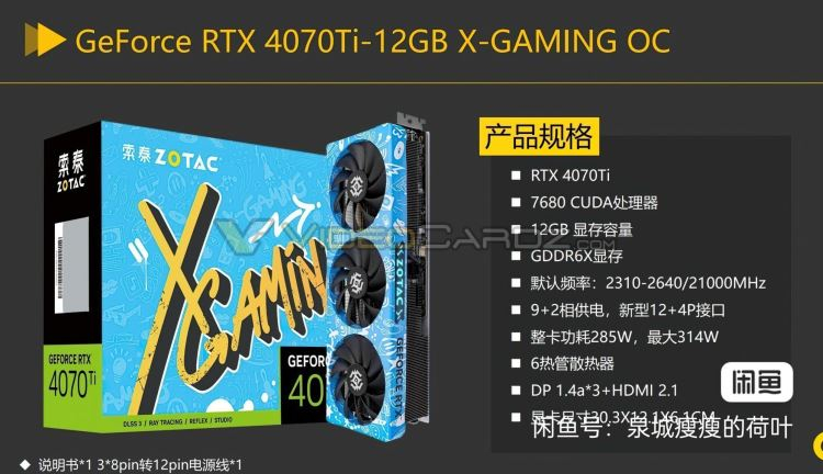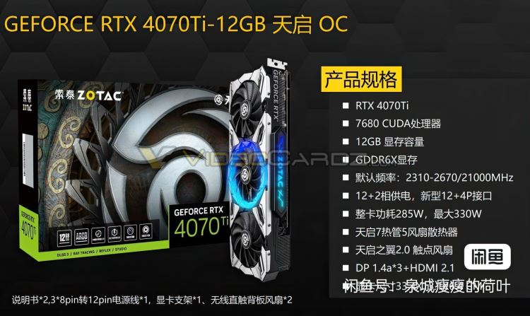 O acelerador GeForce RTX 4070 Ti está equipado com uma GPU AD104 com 7680 núcleos CUDA, 12 GB de memória de vídeo GDDR6X com um barramento de 192 bits e um TDP padrão de 285 W. Ao mesmo tempo, as placas de vídeo da Zotac serão produzidas com um TDP mais alto. O modelo AMP consumirá até 366W no modo Performance, Apocalypse até 330W e X-Gaming até 314W.