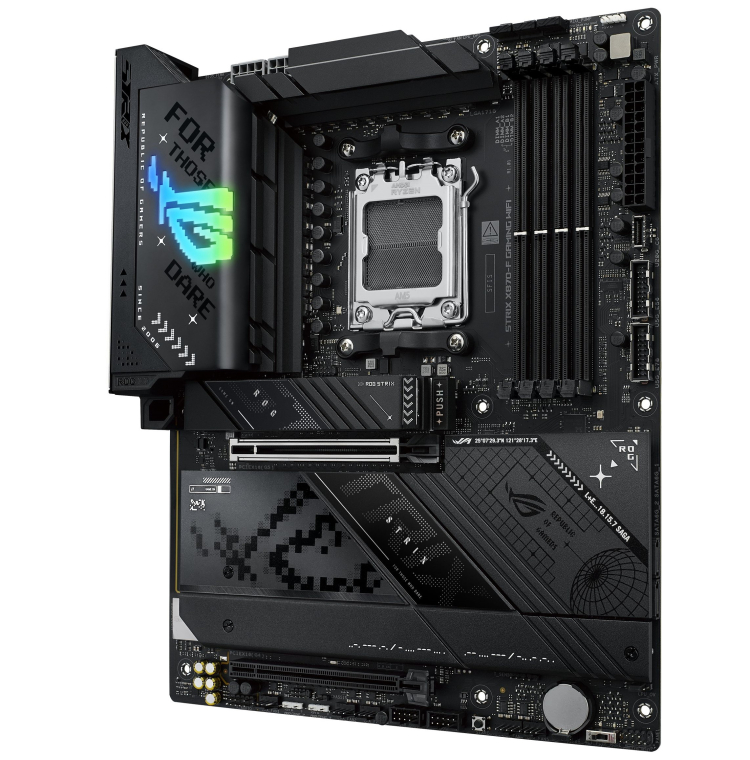 Os modelos de placas-mãe ROG Strix X870-F Gaming WiFi e ROG Strix X870-A Gaming WiFi estão equipados com subsistemas de alimentação VRM de 20 fases com um design de 16+2+2 fases. O fabricante posiciona ambas as placas como uma solução ideal para processadores do nível Ryzen 7 9700X.