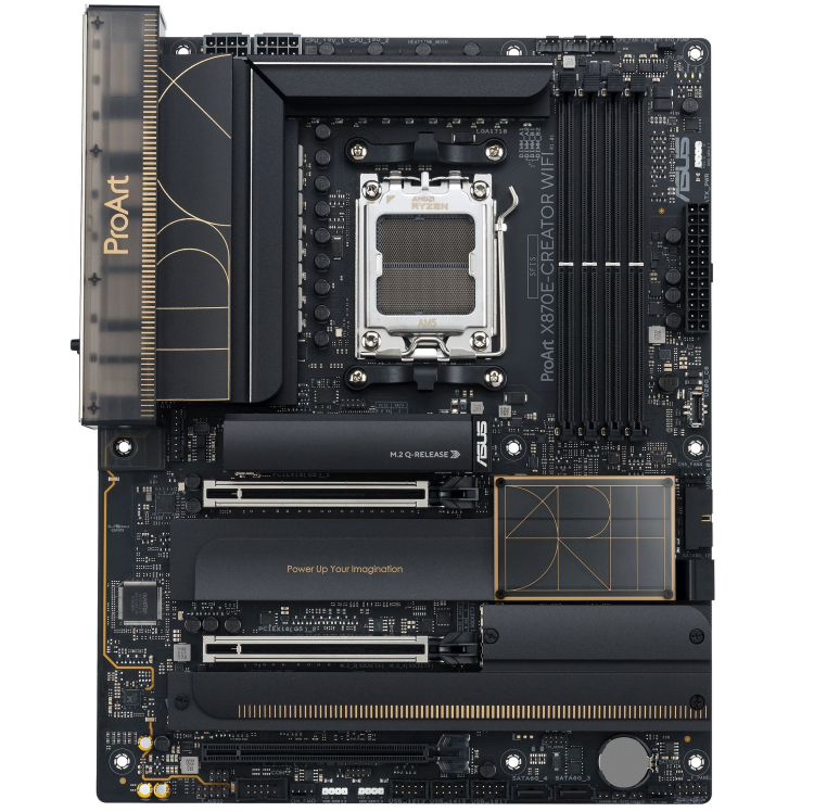 A placa WiFi ProArt X870E-Creator foi projetada para criadores de conteúdo digital. Ele suporta instalação de até 192 GB de RAM DDR5, recebeu dois PCIe 5.0 x16 (operando em modo x16/- ou x8/x8) e um PCIe 4.0 x16 (operando em modo x4). Ele também possui dois M.2 2280 (PCIe 5.0 x4) e um de cada M.2 2280 (PCIe 4.0 x4) e M.2 22110 (PCIe 4.0 x4).
