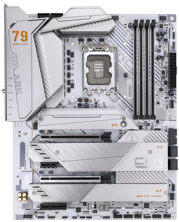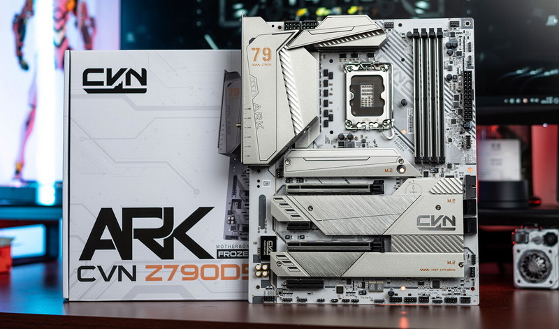 O CVN Z790D5 Ark Frozen é baseado em uma PCB de oito camadas e um subsistema de alimentação de 16 fases com um circuito de 14+1+1 fases, que inclui módulos DrMOS VRM de 90 A altamente eficientes e capacitores de polímero de tântalo. O fabricante observa que a placa pode lidar com processadores Core i9 sem problemas.