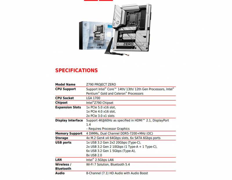 A fabricante ainda não apresentou oficialmente o modelo Z790 Project Zero. No entanto, o insider @wxnod compartilhou informações sobre o conselho. O novo produto com o principal chipset Intel usa o formato ATX padrão. Ele recebeu dois slots M.2 PCIe 4.0 x4 adicionais, bem como dois conectores SATA III adicionais. Além disso, é equipado com um PCIe 3.0 x1 adicional e suporta padrões sem fio mais modernos Wi-Fi 7 e Bluetooth 5.4.