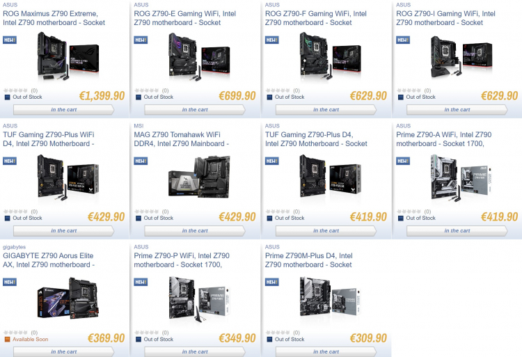 - ASUS ROG Strix Z790-E Gaming WiFi — € 699,90;
