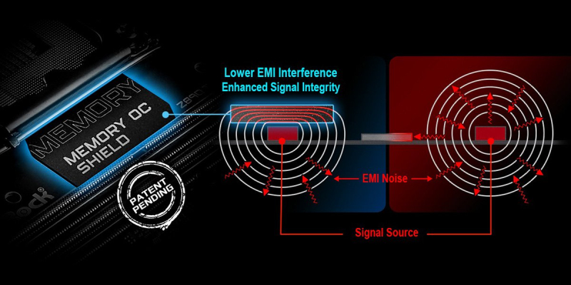 A nova série de placas-mãe ASRock Z890 está equipada com a tecnologia patenteada Memory OC Shield, que, segundo o fabricante, reduz a interferência eletromagnética na transmissão do sinal entre os módulos RAM e a CPU, o que pode prejudicar todo o potencial de overclock. A ASRock redesenhou suas placas para limitar esta interferência. Além disso, as novas placas da fabricante suportam perfis de overclock de RAM Intel XMP e AMD EXPO.