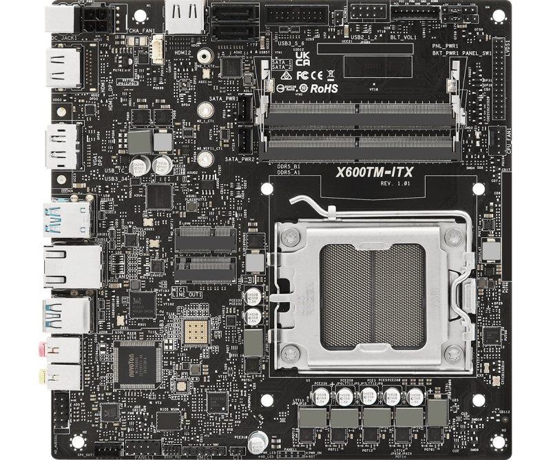 A ASRock lançou a primeira placa-mãe Mini-ITX compacta do mundo com suporte para processadores AMD Ryzen 9000. Ela também suporta chips Ryzen 7000 e Ryzen 8000G. As dimensões do X600TM-ITX são de apenas 170 × 170 mm. O fabricante afirma que a placa foi projetada para uso com processadores com TDP nominal de até 65 W.
