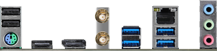 A caixa de interface contém um conector PS / 2 para teclado / mouse, conectores HDMI e DisplayPort 1.4, quatro portas USB 3.2 Gen1 e duas portas USB 2.0, um conector de cabo de rede, conectores de antena Wi-Fi, um conjunto de conectores de áudio. Suporta tecnologia de luz de fundo endereçável proprietária Polychrome RGB Sync.
