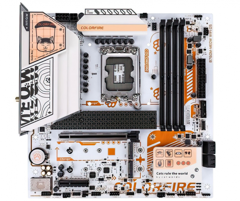 A Colorfire, uma submarca da Colorful, lançou uma série incomum de placas gráficas GeForce RTX 4060 para amantes de gatos no mês passado. O fabricante decidiu não parar nos adaptadores gráficos e recentemente lançou uma placa-mãe B760M MEOW WIFI D5 de baixo custo para os processadores Intel Alder Lake e Raptor Lake no mesmo design.