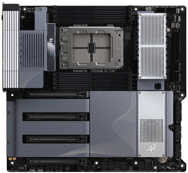 A Gigabyte apresentou a placa-mãe TRX50 AI TOP. O novo produto é fabricado no formato E-ATX e se destina à construção de estações de trabalho baseadas nos processadores AMD Ryzen Threadripper 7000 e Ryzen Threadripper Pro 7000.