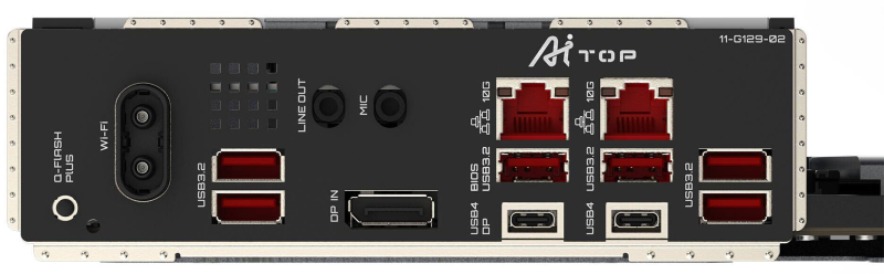 O Gigabyte TRX50 AI TOP também recebeu quatro slots M.2 NVMe e oito slots DIMM para módulos de memória DDR5. Há também dois adaptadores de rede de 10 Gigabit, fornecidos pelos controladores Marvell AQtion AQC113C, suporte para Wi-Fi 7 através do módulo Qualcomm QCNCM865 e dois codecs de áudio. Um é responsável pelo funcionamento dos conectores de áudio do painel frontal e o outro pelos conectores traseiros.