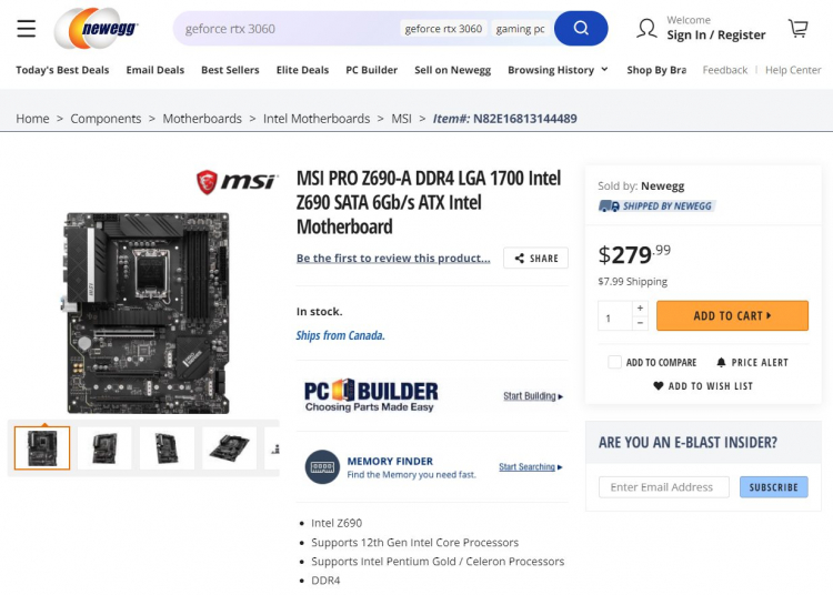 Uma das placas-mãe MSI no chipset Intel Z690, que foi mencionada outro dia, apareceu à venda na filial canadense da loja online Newegg. Estamos falando sobre o modelo MSI Pro Z690-A DDR4, que custa cerca de US $ 227 (nas taxas de câmbio atuais), que é US $ 16 mais caro que seu antecessor Pro Z590-A WIFI e cerca de US $ 32 a mais que o Pro Z590 -Um modelo sem suporte wi-fi.