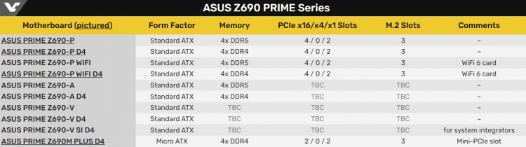 A fonte indica que a ASUS vai lançar pelo menos 10 modelos de placas-mãe da série Z690 Prime. Os modelos com o sufixo “A” em seus nomes se tornarão os representantes mais avançados desta série. Por exemplo, eles serão capazes de oferecer iluminação RGB. As placas menos equipadas serão representadas por modelos com o sufixo “V”. Como eles ficarão ainda é desconhecido.
