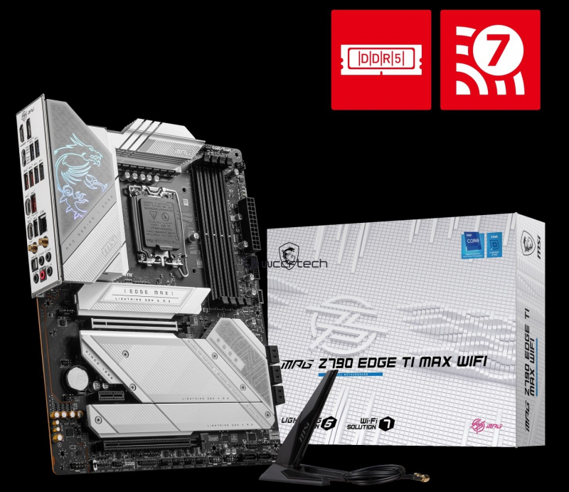 A seguir estão os modelos MSI MPG MAX – Z790 Carbon Max WIFI e Z790 Edge MAX WIFI. O modelo Carbon Max receberá um subsistema VRM justo de 19 fases com fases SPS de 105A. Por sua vez, o Edge MAX oferecerá um VRM de 8 fases com duplicadores e fases de 90A. O modelo Carbon Max suportará memória até DDR5-7600+ , Modelo Edge MAX – até DDR5-7200+. A versão Carbon Max é feita em um tema escuro, o Edge MAX é adequado para construções brancas. Ambos os novos itens têm uma aparência atraente e receberão suporte para Wi-Fi 7. O Carbon Max está equipado com um adaptador de rede LAN de 5 gigabits, Edge MAX – 2,5 gigabits.