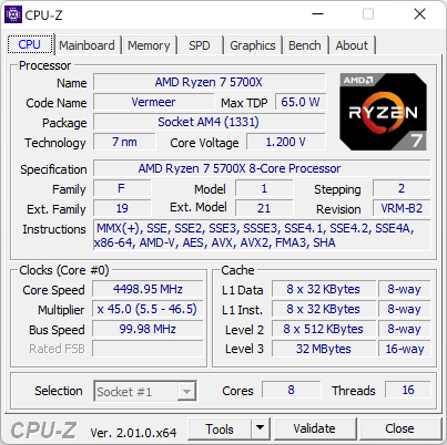 - AMD Ryzen 7 5800X (Vermeer, 8 núcleos + SMT, 3,8-4,7 GHz, 32 MB L3);