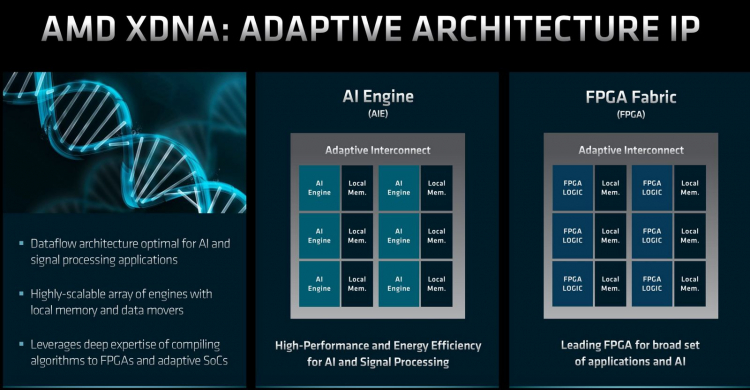 No próximo ano, a AMD pretende lançar os chips móveis Phoenix Point 4nm, combinando a nova arquitetura do processador Zen 4 e também os novos gráficos RDNA 3. Além disso, esses chips serão equipados com o Artificial Intelligence Engine (AIE). Detalhes sobre suas funções e capacidades não estão disponíveis no momento, mas sabe-se que a Xilinx, recentemente adquirida pela AMD, é a responsável por sua criação. Ressalta-se apenas que o AIE receberá uma arquitetura escalável com memória local e poderá oferecer alto desempenho e eficiência no trabalho com IA e processamento de sinais.