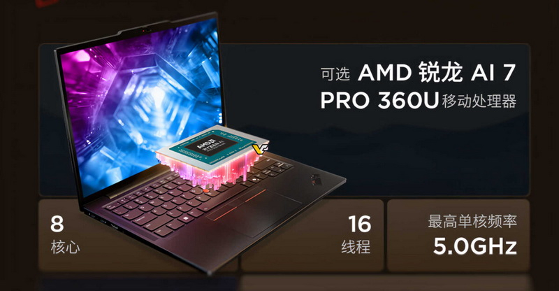 A AMD já lançou modelos de processadores exclusivos para Lenovo, que na maioria das vezes não eram oferecidos em produtos de outros fabricantes. O modelo Ryzen AI 7 PRO 360U parece ser uma versão com eficiência energética do Ryzen AI 7 PRO 360 normal com um TDP variável de 15 a 54 W. A Lenovo não especifica o consumo de energia do chip Ryzen AI 7 PRO 360U em seus materiais publicitários. Pode ter uma classificação fixa de consumo de energia. Não se sabe de que outra forma ele difere do Ryzen AI 7 PRO 360 normal. O Ryzen AI 7 PRO 360U de oito núcleos e 16 threads roda a até 5,0 GHz, tem 24 MB de cache, gráficos Radeon 880M integrados e um mecanismo AI (NPU) de 50 TOPS (trilhões de operações por segundo). O Ryzen AI 7 PRO 360 normal oferece as mesmas características.