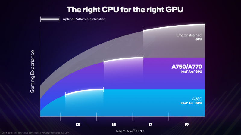 As placas gráficas da série Intel Arc 7 oferecem uma boa relação preço-desempenho, mas não faz muito sentido combiná-las com os principais processadores Intel Core i9: este processador simplesmente não revelará seu potencial. Em apoio a esta tese, a Intel comparou o desempenho de sistemas com essas placas gráficas baseadas no Core i9-13900K com o comportamento de vários Core i5 e i7, ambos de 12ª e 13ª gerações, em mais de 50 jogos. Tendo feito mais de 15 mil execuções de teste, o fabricante coletou uma amostra de dados grande o suficiente para selecionar as configurações ideais de placa gráfica e processador para jogos. Descobriu-se que os gráficos Intel Arc A750 e A770 geralmente atingem seu desempenho máximo em combinação com os chips Core i5 ou Core i7 da geração Alder Lake e Raptor Lake.
