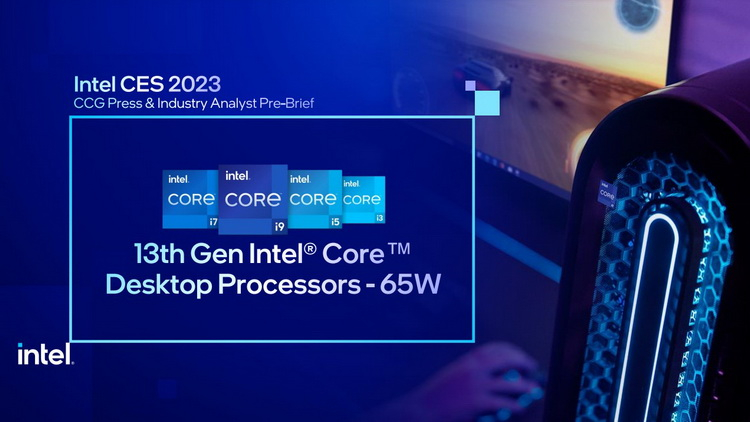 Os Raptor Lakes de 65 watts que compõem a linha principal oferecem de 4 a 24 núcleos físicos com suporte para 8 a 32 threads virtuais. A faixa de frequências básicas dos poderosos núcleos do processador Raptor Cove nesses processadores é menor do que nos modelos mais antigos da série K com um multiplicador desbloqueado e varia de 2,0 a 3,4 GHz, e a faixa de frequência máxima varia de 4,5 a 5,6 GHz, que é novamente menor do que os modelos da série K. Os núcleos Gracemont com eficiência energética para novos produtos operam na faixa de frequência básica de 1,5 a 2,0 GHz e, no modo de overclock automático, sua frequência sobe para 3,3-4,2 GHz, dependendo de um modelo específico. Os processadores receberam de 12 a 36 MB de cache L3 e de 5 a 32 MB de cache L2 (2 MB por P-core e 4 MB por cluster de quatro E-cores).