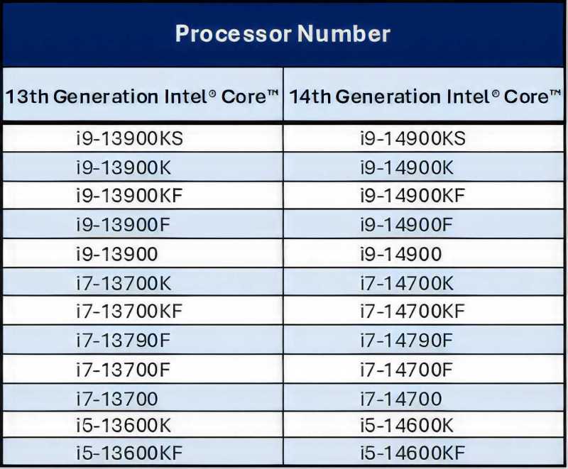 A Intel observa que as novas políticas de garantia cobrem todos os processadores Core de 13ª e 14ª gerações designados, novos e vendidos anteriormente, em todo o mundo. A empresa também lembrou aos usuários o que fazer caso seu processador apresente sintomas de instabilidade. Para proprietários de versões in a box de processadores, a Intel recomenda entrar em contato diretamente com a equipe de suporte ao cliente Intel. Os proprietários das versões Tray dos processadores devem entrar em contato com o ponto de venda onde o processador foi adquirido para obter suporte. Para proprietários de sistemas OEM (PC prontos para uso), a Intel recomenda entrar em contato com o construtor/fabricante do PC.