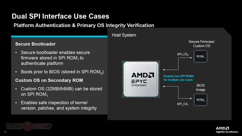 Além disso, esta série de processadores suporta duas interfaces de memória flash SPI, permitindo que arquitetos de sistemas incorporem sistemas operacionais leves diretamente na ROM flash SPI de 64 MB, além da memória flash SPI principal que armazena o BIOS do sistema. Este sistema operacional leve pode atuar como um bootloader para sistemas operacionais em outros dispositivos de armazenamento local.