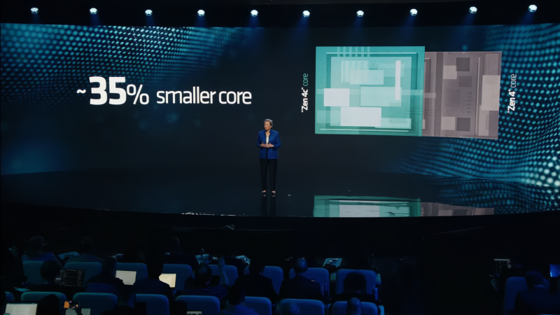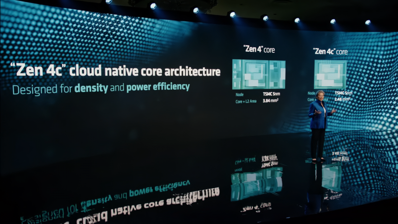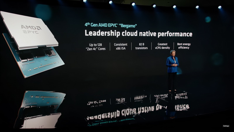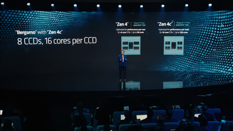 A AMD revelou oficialmente os processadores de servidor da série EPYC Bergamo como parte de seu Data Center & AI Technology Premiere. A série incluiu modelos de chip que receberam até 128 núcleos Zen 4C simplificados, otimizados para computação em nuvem e tarefas de data center. Uma característica fundamental dos novos processadores Bergamo é maior densidade de embalagem e eficiência de energia em comparação com outros chips baseados na arquitetura Zen 4.
