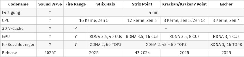 Na IFA 2024 em Berlim, Jack Huynh, vice-presidente sênior e gerente geral do Grupo de Soluções Gráficas e de Computação da AMD, confirmou que os processadores Kraken serão lançados no início de 2025. Esses chips, anteriormente rumores de serem Kraken Point, ajudarão a criar um nicho de laptops acessíveis com IA em um momento em que os chips Strix Point já são usados em dispositivos premium. As especificações oficiais dos futuros processadores ainda não foram divulgadas, mas algumas características já podem ser assumidas com base nos requisitos dos dispositivos Copilot+ PC.