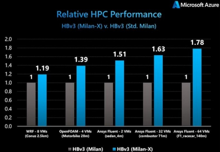 A presença de memória adicional fornece um aumento de desempenho notável. A própria AMD compara os novos produtos com o habitual EPYC Milan em determinadas tarefas. A vantagem dos novos chips é de 19 a 78%.