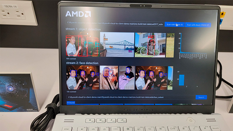 O único exemplo de mecanismo de IA de hardware que a AMD conseguiu mostrar na prática foi seu próprio aplicativo de reconhecimento facial. Ele, como observam as testemunhas oculares, cumpriu sua tarefa com o mínimo de atraso durante o processamento de dados local.