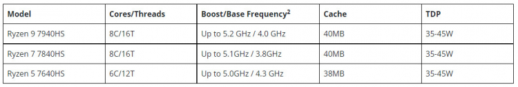 A série Ryzen 7040HS inclui processadores com até 8 núcleos baseados na arquitetura Zen 4. Os processadores receberam GPUs integradas baseadas na arquitetura AMD RDNA e são projetados para laptops ultrafinos. Feito de acordo com a tecnologia de processo de 4nm, o Ryzen 7040HS oferece alto desempenho para sistemas leves e finos.