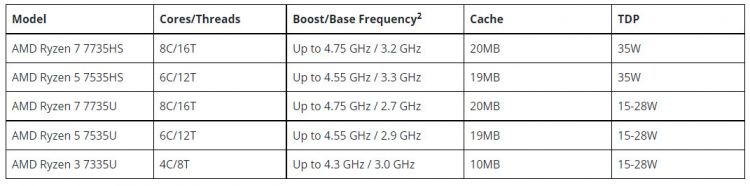 Os processadores Ryzen 7035 são construídos com tecnologia de 6 nm e receberão até 8 núcleos. Eles são especialmente projetados para fornecer a máxima duração da bateria. Os módulos são baseados na arquitetura Zen 3+. Novos itens serão usados pela Acer, ASUS, HP e Lenovo a partir de janeiro.