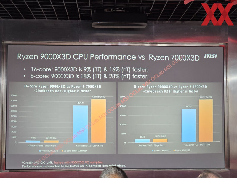 A MSI revelou dados de desempenho dos processadores para jogos AMD Ryzen 9000X3D aos visitantes de um de seus escritórios em Shenzhen, China. A empresa mostrou resultados de testes para o Ryzen 7 9800X3D de oito núcleos e o Ryzen 9 9950X3D de 16 núcleos.